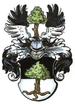 Blasonierung: Im von Silber und Schwarz geteilten Schild eine entwurzelte Buche in natürlichen Farben. Auf dem Helm dieselbe Buche zwischen zwei Flügeln.