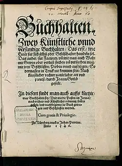 - ↑ Alfred Holl: Johann Gottliebs Einführungen in die Buchhaltung (Nürnberg 1531 und 1546). (PDF) 2020, S. 2, abgerufen am 29. Dezember 2020.