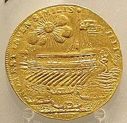 Der zwischen 1601 und 1606 erbaute Bucintoro hatte einen erhöhten Tiemo im Bereich, wo der Doge saß.
