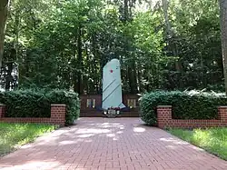 - Sowjetisches Ehrenmal in der Lindenstraße: Es erinnert an 70 sowjetische Soldaten, die hier im Zweiten Weltkrieg 1945 gefallen sind. Das Denkmal ist in Form einer Tragfläche einer MiG-17 mit einem Roten Stern ausgeführt. Darunter befinden sich zwei Propellerflügel aus schwarzem Metall. Die ungewöhnliche Gestaltung (die MiG-17 hatte ihren Erstflug erst 1950 und war deshalb nicht im 2. Weltkrieg im Einsatz) ist darauf zurückzuführen, dass die Überreste eines sowjetischen Bombenflugzeugs, das im 2. Weltkrieg in der Nähe von Buckow abgestürzt war, und seiner Besatzung erst 1972 gefunden wurden. Die Besatzung wurde in der Gedenkstätte beerdigt, 1974 erhielt die Gedenkstätte ihre heutige Form.[43]