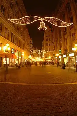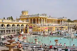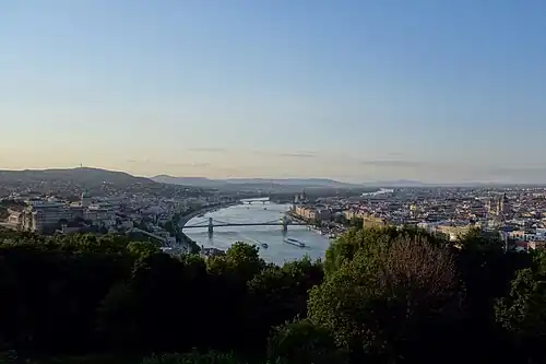 Laut dem britischen Marktforschungsunternehmen Euromonitor International gehört sie zu den zwanzig am häufigsten von Touristen besuchten Städten Europas.[4] Die Einheitsgemeinde Budapest entstand 1873 durch die Zusammenlegung der zuvor selbstständigen Städte Buda (deutsch Ofen), Óbuda (Alt-Ofen), beide westlich der Donau, und Pest östlich der Donau. Der Name Budapest selbst tauchte zuvor nicht auf, üblich im Sprachgebrauch war Pest-Buda. Das Donauufer, das Burgviertel und die Andrássy-Straße gehören heute zum UNESCO-Welterbe.