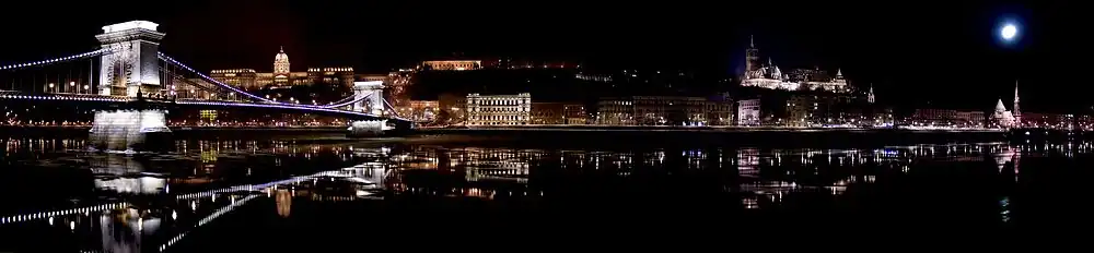 Die Kettenbrücke (ungarisch Széchenyi Lánchíd) wurde in der Zeit von 1839 bis 1849 als erste feste Brücke auf Anregung des ungarischen Reformers Graf István Széchenyi erbaut. Angeregt wurde er dazu, nachdem er eine Woche lang warten musste, um zum Begräbnis seines Vaters ans andere Ufer zu kommen. Den ungarischen Namen trägt sie ihm zu Ehren. Sie ist die älteste und bekannteste der neun Budapester Brücken über die Donau. Zuvor wurde (neben Fährverbindungen) im Sommer eine Pontonbrücke verwendet, welche aus aneinander befestigten Booten bestand.