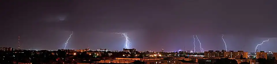 Das Klima ist gemäßigt kontinental. In den Monaten Juni, Juli und August liegt die durchschnittliche Temperatur über 20 °C. Die Wintertemperaturen bewegen sich häufig unter 0 °C. Sie fallen jedoch selten unter −10 °C. Im Januar 1888 wurde mit −30 °C die niedrigste Temperatur und am 20. August 1945 mit 41,1 °C die höchste Temperatur in Bukarest gemessen.[8] Berüchtigt ist im Winter der Crivăț, ein kalter kontinentaler Wind, der aus nordöstlicher Richtung weht und Dauerfrost und Schneestürme mit sich bringt.