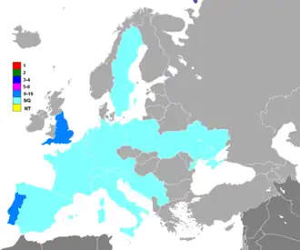 | 2000 | Niederlande und Belgien | nicht qualifiziert | In der Qualifikation an England und Schweden gescheitert. | |||