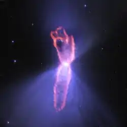 | Bumerangnebel, aufgenommen vom Hubble-Weltraumteleskop mit Polarisationsfilter. | |