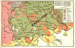 Demografische Karte Makedoniens mit der ethnischen Zusammensetzung der Bevölkerung, herausgegeben von den Makedonischen Studentenvereinen im Auslande in Wien