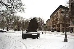 Skulptur Triade von Louis Niebuhr auf dem Vorderhof des Gebäudes