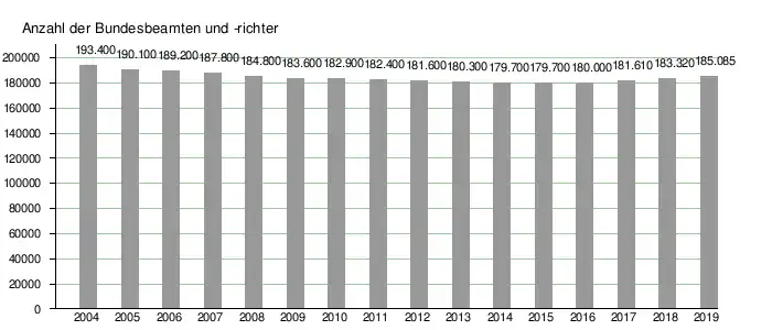 - ↑ Personal des öffentlichen Dienstes, Fachserie 14 Reihe 6. (PDF) In: Statistisches Bundesamt. 18. September 2020, abgerufen am 11. November 2020 (185.085 abzüglich 550 Personen in der Besoldungsordnung R (Bundesrichter) zuzüglich 149 Beamte als Staatsanwälte beim Generalbundesanwalt (gemäß Bundeshaushalt 2020).).