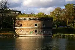 Die Bundesfestung Ulm in Ulm und Neu-Ulm war – neben Landau, Luxemburg, Mainz und Rastatt – eine von fünf deutschen Bundesfestungen. Diese Festungen wurden durch den Deutschen Bund finanziert (daher auch der Name) und, wie auch zahlreiche Landesfestungen, im 19. Jahrhundert aus- oder neu gebaut. Die Festung in Ulm wurde im Jahre 1859 fertiggestellt.[1] Mit einer polygonalen Hauptumwallung von rund neun Kilometern war Ulm die größte Befestigung des 19. Jahrhunderts in Europa. Der Festungsstatus von Ulm wurde erst 1938 aufgehoben.[2]