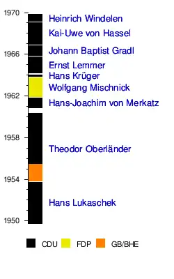 | 2 | Theodor Oberländer | 1905–1998 | GB/BHE (bis 1955) CDU (ab 1955) |