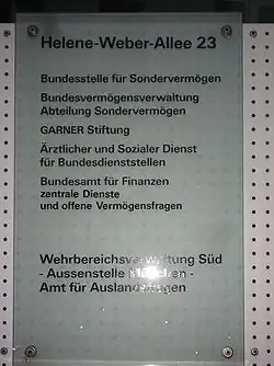 Darüber hinaus bestehen Außenstellen im Großraum Köln/Bonn bzw. im Raum Bonn, im Landkreis Traunstein und im Raum Brück.[62]