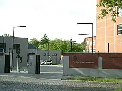 Die zentrale BND-Dienststelle befindet sich in der Chausseestraße 96–99A[55] im Berliner Bezirk Mitte. Der Gebäudekomplex wurde von 2006 bis 2018 auf dem Gelände der ehemaligen Maikäferkaserne und des ehemaligen Stadions der Weltjugend erbaut. Das mittig liegende Hauptgebäude mit zwei Torhäusern stammt vom Architekturbüro Kleihues + Kleihues, das Nordgebäude von Hilmer Sattler Architekten Ahlers Albrecht und das Südgebäude vom Architekturbüro Lehmann. In der Nordbebauung ist die Technik- und Logistikzentrale der BND-Zentrale untergebracht, in der Südbebauung befindet sich das Zentrum für Nachrichtendienstliche Aus- und Fortbildung sowie das Besucherzentrum des BND. In der Berliner Zentrale arbeiten rund 4000 Mitarbeiter, darunter auch die Leitung des BND. Der Umzug erfolgte zwischen Sommer und November 2018 in mehreren Abschnitten.[56]