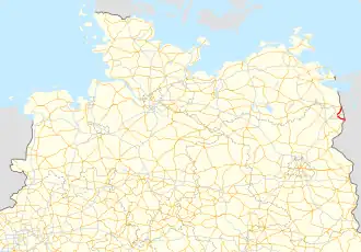 | Straßenende: | Mescherin (53° 15′ 18″ N, 14° 26′ 30″ O) | |||||||||||||||||||||||||||||||||||||||||||||||||||