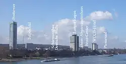 Auf dem Gelände, auf dem mit der Parteizentrale der CDU, der britischen Botschaft, der Zentrale des Deutschen Roten Kreuzes und der Bonnfinanz typische Gebäude der „Bundeshauptstadt-Ära“ standen, wurden alle Immobilien abgerissen.[32] Von 2006 bis 2008 entstand dort der Office Port Bonn, der die Zentrale der Telekom-Festnetzsparte T-Home beherbergt. Der Neubau des Polizeipräsidiums auf dem „Dahlienfeld“ in Ramersdorf wurde 2006 bezogen. Eine der letzten Baulücken an der B 9 schlossen das 2009 fertiggestellte artquadrat als Verbindung der Büro- mit der Museumsmeile und 2019 der GIZ-Campus[33].