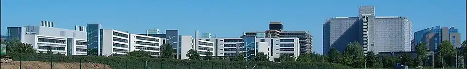 Auch die Investitionen von Privatunternehmen stiegen an: An der Heinemannstraße in Hochkreuz entstanden ab Ende der 1990er-Jahre unter privater Regie mehrere Büroneubauten, darunter als größtes Mietobjekt bis 2002 das „Rheinauen Carré“. Das unweit an der Rheinaue gelegene Forschungszentrum caesar wurde 2003 fertiggestellt. Mitte der 1990er-Jahre erschloss die Stadt das Gelände der zuvor abgerissenen Zementfabrik in Ramersdorf, dessen Ausbau zu einem umfangreichen Geschäfts- und Bürostandort mit dem heutigen Namen Bonner Bogen 2002 begann. Insgesamt entstanden zwischen 1999 und 2003 Bürogebäude für zwei Milliarden Euro.[29]