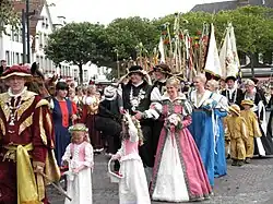 | Historisches Festspiel „Die Kinderzeche“ zu Dinkelsbühl | 2016 | Bayern | Die Kinderzeche in Dinkelsbühl ist ein Kinder- und Heimatfest, das auf ein im 16. Jahrhundert erstmals veranstaltetes Schulfest zurückgeht. In dem Festspiel wird eine lokale Sage nachgespielt, nach der im Dreißigjährigen Krieg Dinkelsbühler Kinder die Stadt vor den Schweden gerettet haben sollen.unesco.de | M, D, G | |