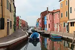 Typisch für Burano sind die vielen kleinen in jeweils einer zu den Nachbarhäusern kontrastierenden kräftigen Farbe gestrichenen Fischerhäuser, die sich in den Kanälen spiegeln und die die Individualität der jeweiligen Hausbesitzer betonen. Die kuriose Farbenpracht zieht viele Maler und Fotografen auf die Insel.
