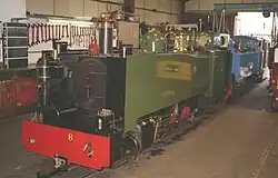 | 8 | John of Gaunt (ursprünglich Thunder) | 1997 (2008 auf Kohlen umgerüstet) | Schwarz mit Linien | Dampf | 2-6-2T | Betriebsbereit |
