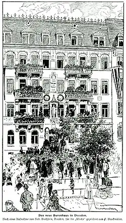 - ↑ Paul Brockmüller: Das neue Burenhaus in Dresden. In: Die Woche vom 25. Juli 1901.