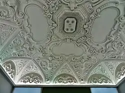 Im Inneren sind die Säle teilweise stuckiert. Zwei tragen Stuckdecken von Gabriel Wittini (1682). Ein gewölbter Raum im Nordtrakt trägt barocken Knorpelwerk-Stuck aus dem 17. Jahrhundert mit geflügelten Engelsköpfen, Hermen, Löwen- und Menschenköpfen. Im Osttrakt gibt es flache Stuckdecken mit Blütenranken (circa 1780). Die Decke der alten Burgkapelle im ersten Stock des Nordtraktes trägt zarten Stuck aus Blättern, Blüten, Bändern, Rosetten, Kartuschen und Gittern, in die das Christus-, Marien- und Jesuitenmonogramm eingearbeitet sind.