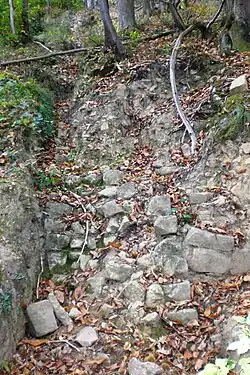 Erst in den 1950er Jahren wurde die Burg wiederentdeckt, und bei Grabungen wurden weitere Grundmauern gefunden.[5][6] Es konnten drei verschiedene Mauerreste freigelegt werden, deren Außenschalen aus einem für die Salierzeit typischen kleinquadrigen Mauerwerk bestehen. Dass ein Mauerrest anstatt mit Mörtel mit Lehm gemauert wurde, weist ebenfalls auf die Salierzeit hin. Vergleichbares Mauerwerk wurde am Trifels, Anebos und am Waldschlössel bei Klingenmünster gefunden. Auch das Auffinden von Wilgartaburg-ähnlicher Keramik lässt einen früheren Baubeginn als bisher angenommen zu.