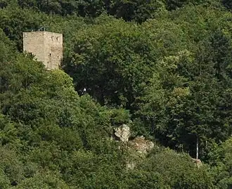 Von der Plattform des 20 Meter hohen, fünfseitigen Bergfrieds aus hat man einen sehr guten Blick in die Umgebung. Das Mauerwerk der kleinen Anlage ist ein gut erhaltenes Beispiel hochstaufischer Bauart. Ein weiteres Merkmal dieser Bauart ist die vorgezogene Spitze der Angriffsseite des Bergfrieds. Nördlich der Burgruine befinden sich an einem Steilhang Mauertrümmer, welche auf die frühere, tiefer gelegene Vorburg hinweisen. Von 1961 bis 1975 wurden Überreste eines Burghauses, eines Torturms und eines Schachtbrunnens freigelegt.