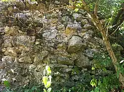Einziger, noch heute erhaltener Rest: Die „Futtermauer“ (Innenteil nach Abbau der Außenschale) der Grabenmauer.
