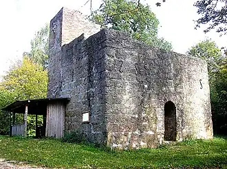 Der hochmittelalterliche Bergfried von Südwesten | ||