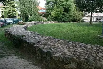 Das Areal wurde gegen Ende des 19. Jahrhunderts zum Teil zur Anlage eines Kerbplatzes planiert, worauf ihre genaue Lage in Vergessenheit geriet.[11] Beim Ausheben eines Löschwasserteichs im Jahr 1941 wurden ihre Mauern angeschnitten und von Ferdinand Kutsch untersucht.[12] In der Folgezeit stieß man bei Kanalarbeiten noch mehrmals auf Mauerreste, so auch im Jahre 1988, als der Fund dank des gestiegenen Geschichtsbewusstseins einiger Bürger und des Magistrats zu einer über mehrere Jahre andauernden archäologischen Untersuchung führte. Heute ist ein Teil der Ringmauerfundamente bis zu einer Höhe von 0,50 – 0,70 m aufgemauert in das Freigelände eines Kinderhorts integriert.