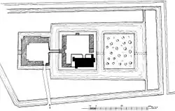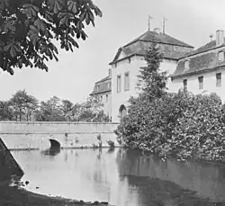 Von der großen Anlage ist heute nur noch die neuere Vorburg im Süden erhalten. Ein Zufahrtsweg führt von Westen auf sie zu und passiert dabei eine kleine Kapelle aus dem 17./18. Jahrhundert[10]. Der dreiflügelige Wirtschaftshof besitzt eine zur ehemaligen Herrenhausinsel geöffnete U-Form und stammt mehrheitlich aus dem letzten Viertel des 19. Jahrhunderts.