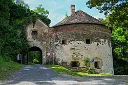 Der im Kern mittelalterliche Torbau verfügt über zwei spitzbogige Portale aus Bruchstein und war ebenfalls mit einer Zugbrücke ausgestattet. Einige Meter nach dem inneren Torbogen liegt ein weiteres, barockes Ziegelportal, über das man in die Vorburg gelangt.