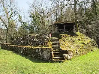Von der ehemaligen Burganlage, einem turmartigen Gebäude mit einer Seitenlänge von zwölf Metern, sind noch die Grundmauern und der Halsgraben erhalten.