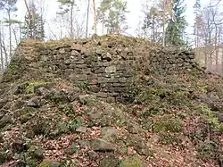Burg Heidenkeller – Wall im Westen der Anlage | ||