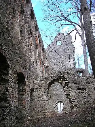 Südwestteil der Burg mit dem Palas und dem Torbau (rechts) -