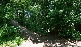 ![]() Blick in den Graben vor dem Hauptwall (links) | ||