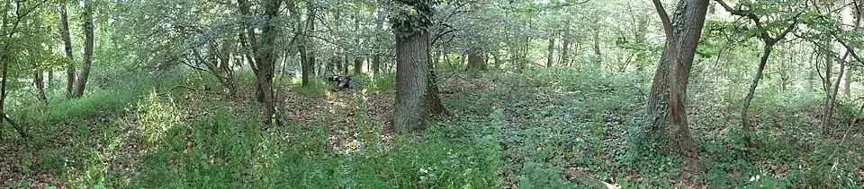 Der Übergang zum Bergrücken im Norden mit dem deutlich überhöhten Burgbereich. | ||