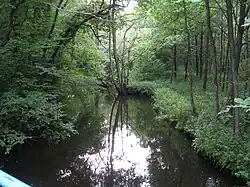 Verlauf der Mołstowa Richtung Südost. Am rechten Ufer befand sich die ehemalige Burganlage.