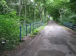 Brücke über der Mołstowa nordwestlich des Burghügels.