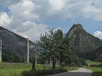 Nach ca. 400 m gelangt man zur Hauptburg. Die dem Palas vorgelagerte Mauer besitzt ein mit einem Satteldach gedecktes Torhaus mit einem rundbogigen Portal. In der nach Süden verlaufenden Mauer springt ein halbrunder Schalenturm vor. Der Weg zum Palas wird auf der Südseite von einer Mauer begleitet. Nach etwa 100 m kommt man zu einem auf der Nordseite gelegenen Turm mit Zinnen und Schießscharten, dieser steht am Abhang zum Inntal und besitzt noch drei gemauerte Seiten. Südlich davon liegt der fünfgeschoßige Palas der Burg. Auf seiner Westseite sind zwei längliche Schießscharten (Bogenscharten) vorhanden. Der sich nach oben verjüngende Palas besitzt an den Ecken sorgfältig behauene Eckquader. Alle Fenster besitzen Steingewände. Das romanisch anmutende linksseitig gelegene Portal führt durch einen Zugang zum Innenhof der Burg. Auf beiden Seiten sind Reste eines ehemals im Erdgeschoß vorhandenen Gewölbes zu erkennen; nach oben ist ein Gewölbe auf der Höhe des ersten Stocks vorhanden. Durch ein zweites Rundbogentor gelang man in den Innenhof der Anlage.
