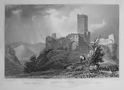 Angeblich verdurstete die 17 Jahre alte Touristin Idilia Dubb aus Edinburgh 1851 auf dem Bergfried der Höhenburg, nachdem die morsche Treppe hinter ihr eingestürzt war, und hinterließ dort ein Tagebuch ihrer letzten vier Lebenstage, das mit dem 19. Juni endet. Dieses soll wie auch ihr Skelett erst Jahre später bei der Restaurierung des Turmes gefunden worden sein. Der Turm bietet weiten Ausblick in das Lahntal, und in das Rheintal nach Schloss Stolzenfels und Koblenz. Er ist jedoch für Besucher nicht zugänglich.