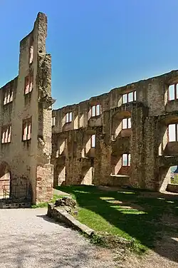 Von der gesamten Burganlage mit dem im 16. Jahrhundert erbauten dreigeschossigen Palas sind noch erhebliche Mauerreste erhalten. Die Architektur des Wiederaufbaus zeigt überall Spuren der jeweils gängigen Baustile. Außergewöhnlich ist auch der Burgbrunnen aus dem 13. Jahrhundert: Er hat eine Tiefe von nahezu 40 Meter, darin befindet sich eine Wassersäule von ca. 2,50 Meter. Das Wasser wird heute mit einer elektrischen Tauchpumpe nach oben befördert.