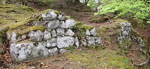 Da auf dem schmalen, zur Talkante hin abfallenden Felskamm die Lage von Wirtschaftsgebäuden wenig wahrscheinlich ist, könnten diese auf der sich im Vorfeld des Burgfelsens auffächernden Hochfläche zu verorten sein.[2]