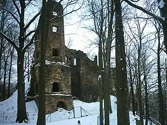 Die Ruine der Burg Liebau in der Gemeinde Pöhl im Vogtland (Sachsen, Deutschland) | ||