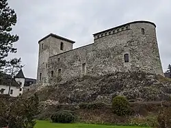 ![]() Burgruine und Schloss (links) im Jahr 2010 | ||