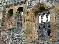 | Bauweise | Bruchstein (Basalt), Buckelquader (Sandstein) | |