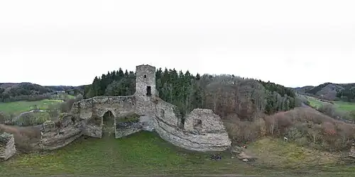 - ↑ Friedrich-Wilhelm Krahe: Burgen des Deutschen Mittelalters, Grundriss-Lexikon. Lizenzausgabe für Bechtermünz Verlag erschienen im Weltbild Verlag GmbH, Augsburg 1996, ISBN 3-86047-219-4, S. 420.