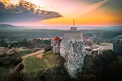 Archäologische Funde legen die Annahme nahe, dass die Burg bereits im 13. Jahrhundert bestand. Gründungssagen nennen Johann Muskata, Wenzel II. von Böhmen und die Toporczyk aus Morawica als Erbauer. Kasimir der Große ließ die Burg ausbauen. 1396 ist erstmals ein Burggraf urkundlich fassbar. Zuvor war die Burg Sitz eines Starosten an dem Handelsweg Via Regia zwischen Breslau und Krakau. Spytek Melsztyński wurde von Władysław II. Jagiełło mit der Burg beliehen. Sie blieb bis zur Mitte des 15. Jahrhunderts in den Händen der Melsztyński, die mit den Hussiten sympathisierten und 1439 in der Schlacht bei Grotniki vom Krakauer Bischof Zbigniew Oleśnicki geschlagen wurden. Die Burg wurde konfisziert, jedoch belieh Władysław III. die Witwe des letzten Melsztyński erneut mit der Burg. 1441 fiel die Burg durch Heirat an Andrzej Tęczyński und blieb bis 1509 bei den Tęczyński, die sich später nach der Burg Rabsztyński nannten. 1511 erwarb Andrzej Kościelecki die Burg, nach dessen Tod 1515 fiel sie an Hans Boner und später Severin Boner. Bei den Bonerowie blieb sie vier Generationen bis 1592. Die Bonerowie hatten hier unter anderem König Heinrich III. von Polen und Frankreich zu Gast. Während der Thronstreitigkeiten 1587–88 in Polen-Litauen hielt die Burg einer Belagerung durch die Zborowski aus dem Habsburgischen Lager stand und die Burgbesatzung beteiligte sich an der Zerschlagung eines Entsatzheeres, das Maximilian III. von Habsburg zur Hilfe nach Krakau eilte. 1592 kam die Burg an die Firlej. 1599 baute Mikołaj Wolski die untere Burg zu einem Spätrenaissance-Schloss aus. Die Arbeiten wurden wahrscheinlich nach 1630 von Zygmunt Gonzaga Myszkowski fortgesetzt. 1657 wurde die Anlage von schwedischen Truppen während der Schwedischen Sintflut zerstört. Ein Wiederaufbau wurde nicht zu Ende gebracht, auch wenn das Schloss noch bis ins 18. Jahrhundert bewohnt wurde. Im 18. Jahrhundert zogen die Eigentümer in ein neuerrichtetes Schloss im Ort Rabsztyn um. Eine teilweise Rekonstruktion wird im 21. Jahrhundert versucht.