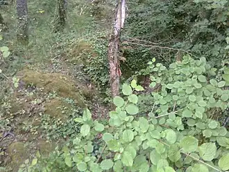 ![]() Überwucherte Mauerreste der ehemaligen Burg Rheinsberg | ||