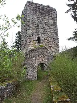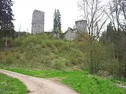 Die ehemalige Burganlage zeigt noch Reste der Grundmauern der Wohngebäude, des nördlichen Bergfrieds, Reste einer Trennungmauer und Reste des noch besteigbaren südlichen Bergfrieds.