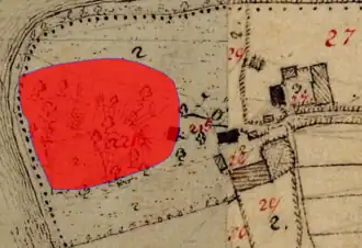 Lageplan von Burg Rottbach auf dem Urkataster von Bayern